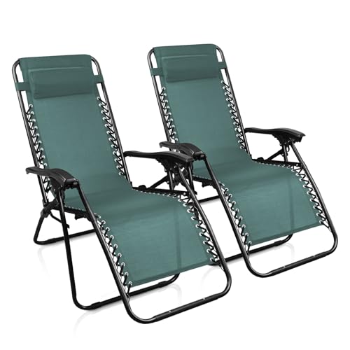 BAKAJI Chaise Longue Transat Jardin Plein Air, Transat de Plage Pliable, Bain de Soleil avec Repose-tête, d’accoudoirs Réglables, Chaise de Camping Gravité Zéro en Oxford (Vert)