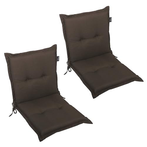 LILENO HOME MAR Lot de 2 coussins pour chaise de jardin à dossier bas, couleur chocolat, chaises longues confortables comme coussins d'assise pour meubles de jardin, coussins de chaise pour chaises de