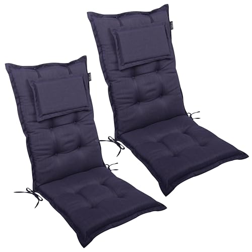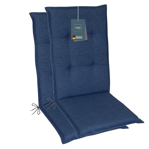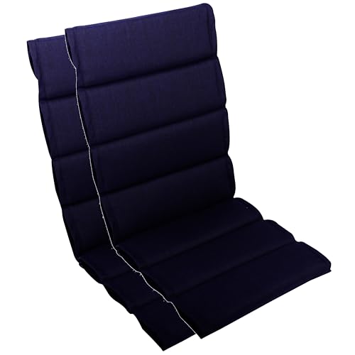 LILENO HOME MAR Lot de 2 coussins pour chaise de jardin à dossier haut, bleu foncé, chaises longues confortables pour meubles de jardin, coussins de chaise pour chaises de jardin et chaises pliantes