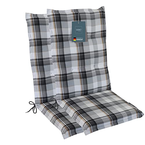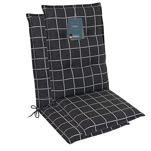 LILENO HOME Coussins pour chaise de jardin [2 pièces – à dossier haut], à carreaux, gris, chaises longues confortables comme coussin d'assise pour meubles de jardin et chaises pliantes