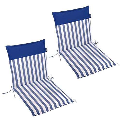 LILENO HOME Coussins pour chaise de jardin [1 pièce – à dossier haut], à rayures bleues, chaises longues confortables comme coussin d'assise pour meubles de jardin et chaises pliantes