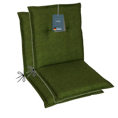 LILENO HOME Lot de 2 coussins pour chaise de jardin à dossier bas - Vert - Pour chaises longues confortables comme coussins d'assise pour meubles de jardin - Coussins de chaise pour chaises de jardin