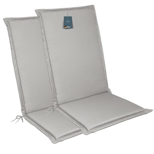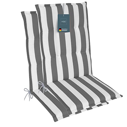 LILENO HOME MIA Lot de 2 coussins pour chaise de jardin à dossier haut, gris, chaises longues confortables pour meubles de jardin, coussins de chaise pour chaises de jardin et chaises pliantes