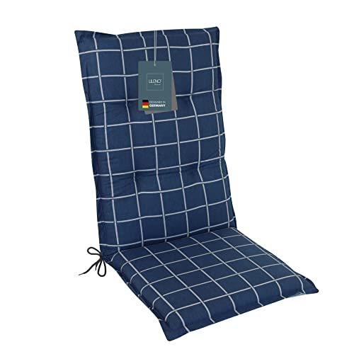 LILENO HOME Coussins pour chaise de jardin et chaises pliantes [1 pièce – Dossier haut], carreaux de yacht, bleu foncé, chaises longues confortables comme coussins d’assise pour meubles de jardin