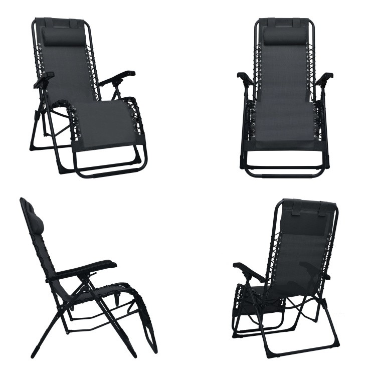 Chaises De Patio Inclinables Chaises Longues Zéro Gravité des Chaises Longues Jardin en Plein Air Chaise À Bascule Deck pour Plage Camping Soutient 200 kg (Color : Black)