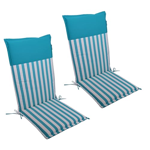LILENO HOME Coussins pour chaise de jardin en [lot de 2 - dossier haut] à rayures Aqua - Uni Aqua - Confortables comme chaises longues pour meubles de jardin - Coussins pour chaises de jardin Malt