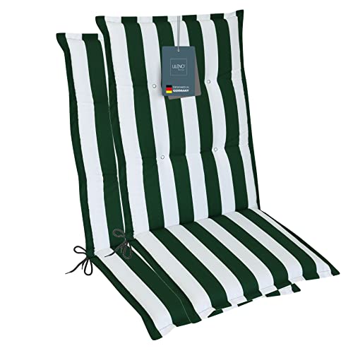 LILENO HOME Coussins pour chaise de jardin [2 pièces – à dossier haut], à rayures vertes, chaises longues confortables comme coussin d'assise pour meubles de jardin et chaises pliantes
