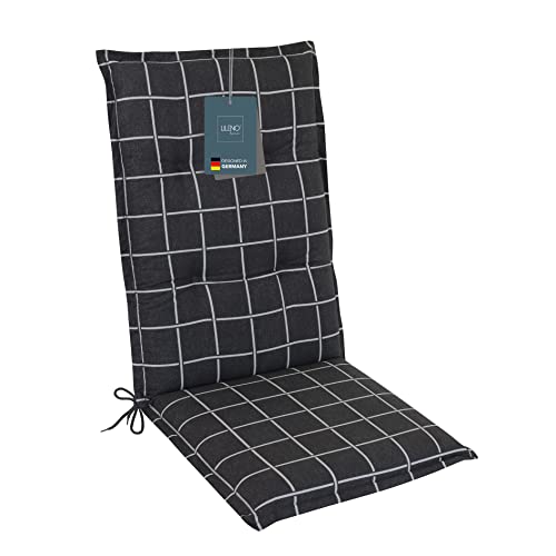 LILENO HOME Coussins pour chaise de jardin et chaises pliantes [1 pièce – Dossier haut], carreaux de yacht, anthracite, chaises longues confortables comme coussins d’assise pour meubles de jardin