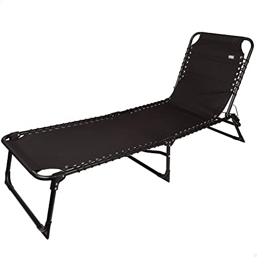 AKTIVE 61087 - Chaise Longue de Jardin d'Extérieur Pliante Multi-Positions Noire, Mesures 190X58X32, 82 cm, pour 1 Personne, Supporte Max 110 kg, Hamacs et Chaises Longues de Jardin