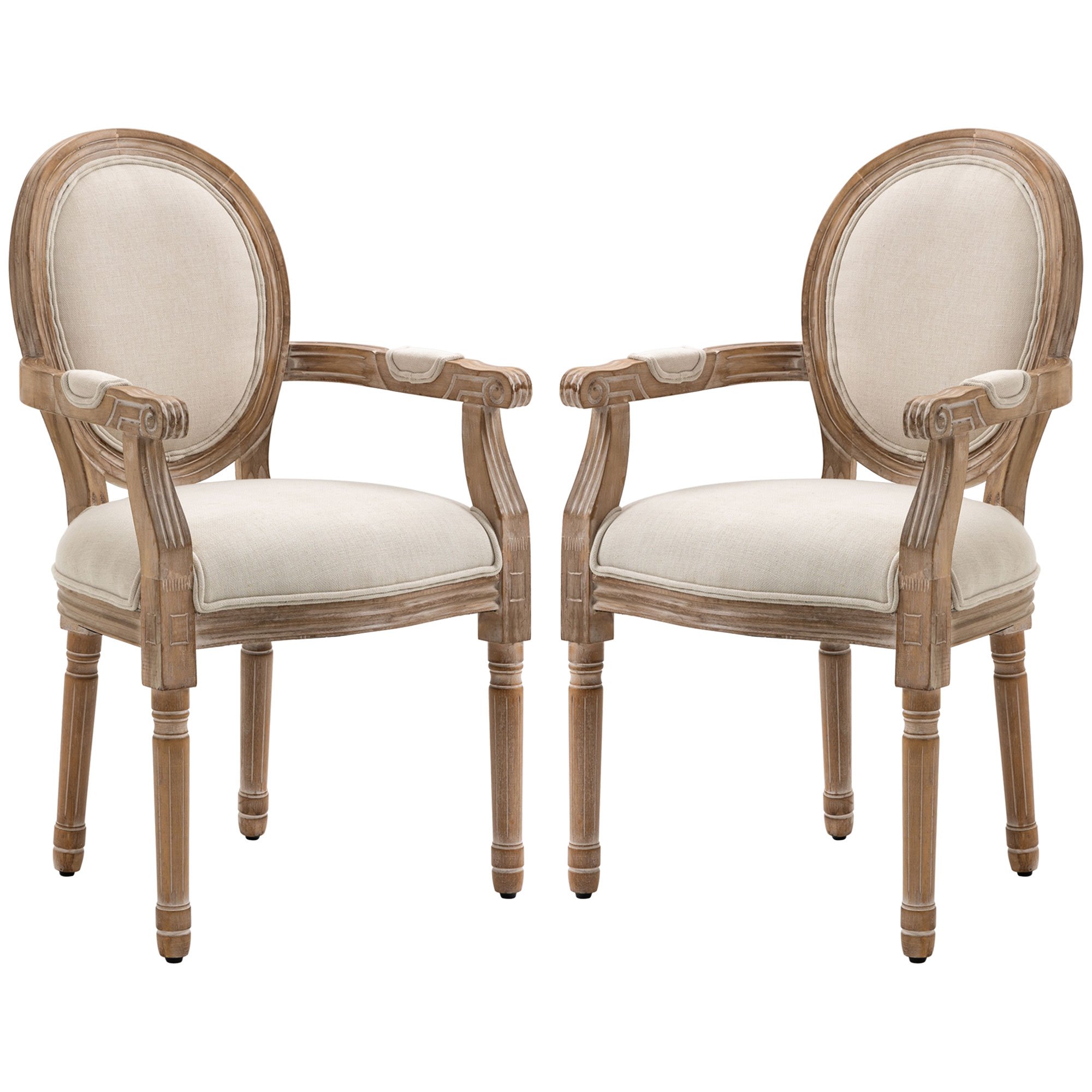 HOMCOM Lot de 2 chaises de Salle à Manger Chaise de Salon médaillon Style Louis XVI Bois Massif patiné sculpté Tissu Lin Crème