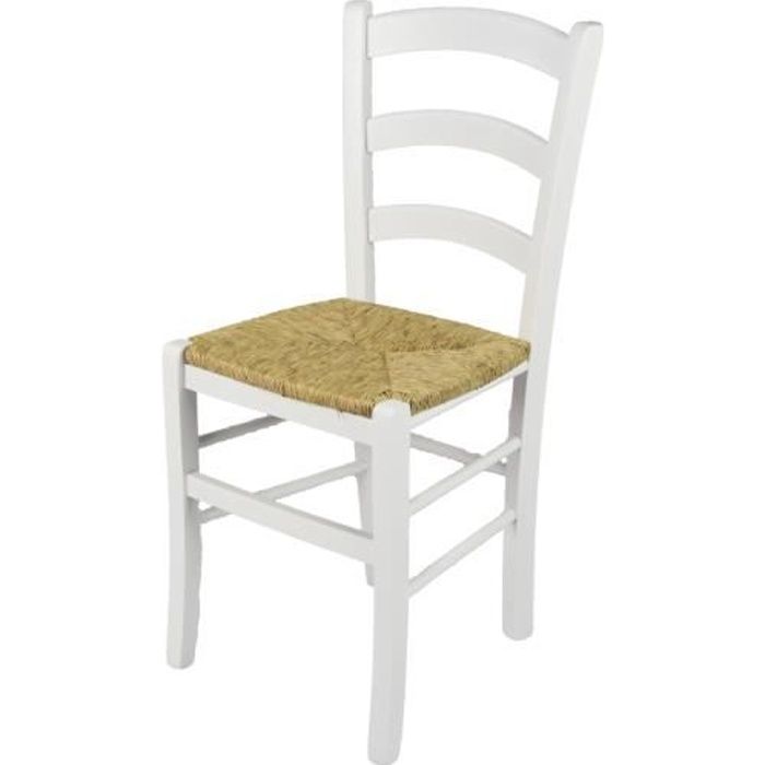 Tommychairs - Chaise cuisine VENEZIA robuste structure en bois de hêtre laqué en couleur blanc et assise en paille