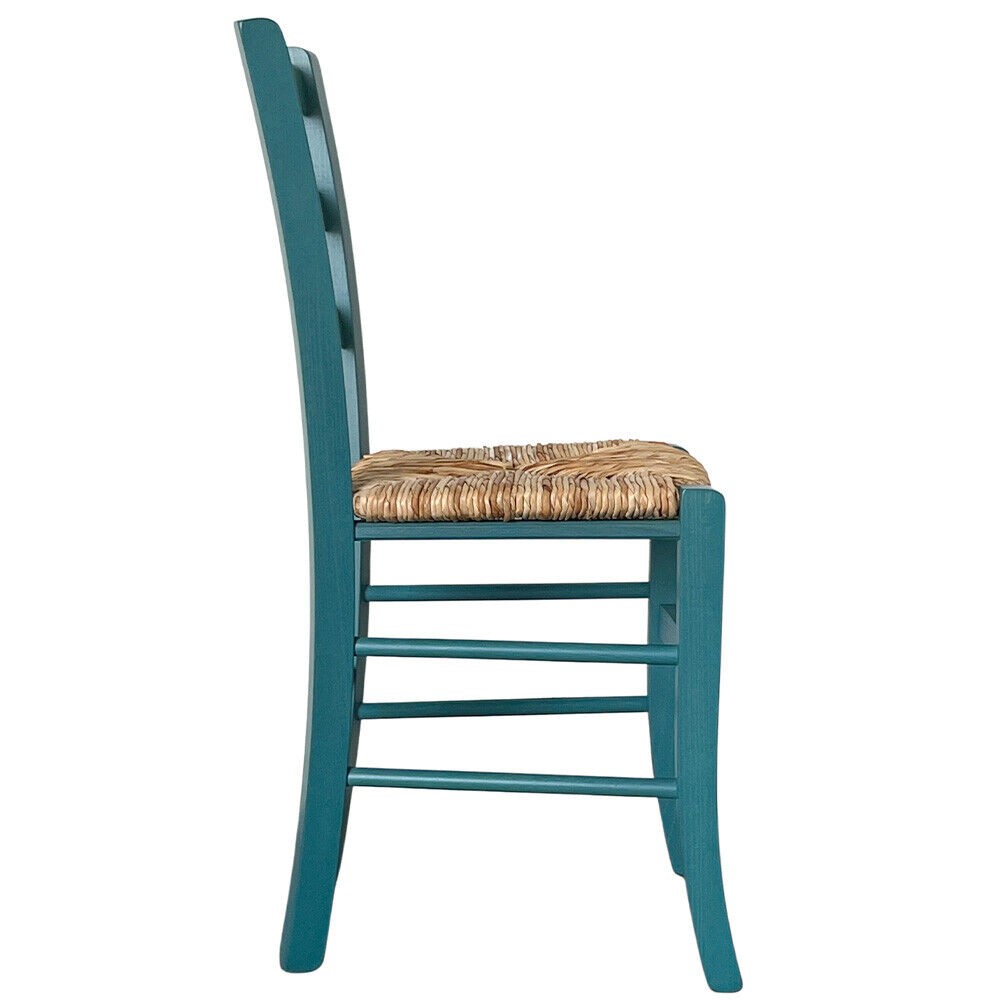 Chaise En Bois Venezia Turquoise Avec Assise En Paille De Riz