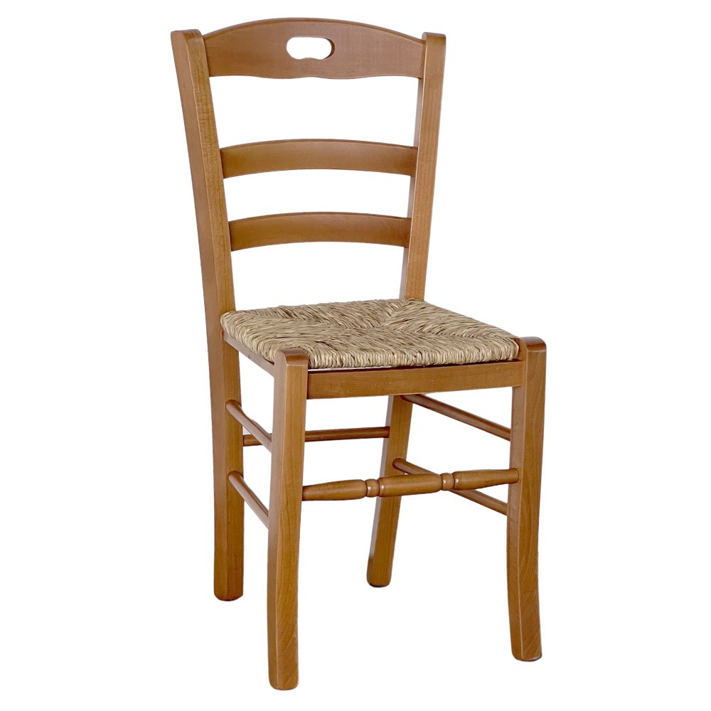 Chaise De Cuisine En Bois Paesana Noyer Clair Avec Assise En Paille De Riz