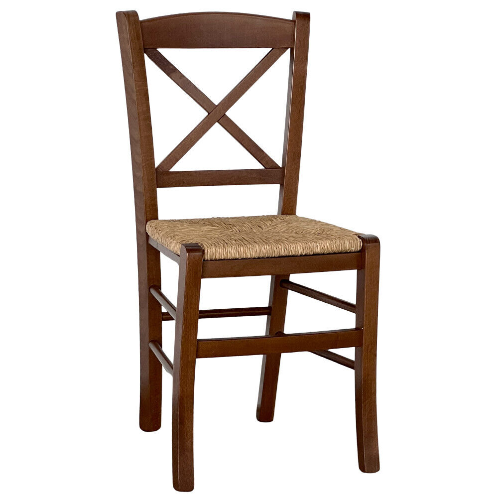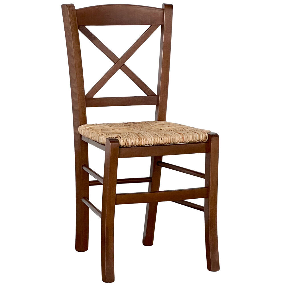 Chaise De Déjeuner en Bois Venise Croix Noyer Sombre Avec Siège En Paille