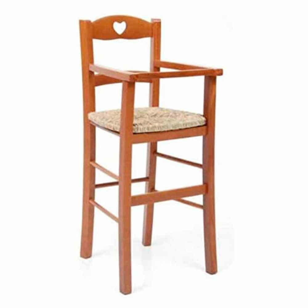 Chaise Haute En Bois Couleur Noyer Clair Avec Assise En Paille Pour Enfants