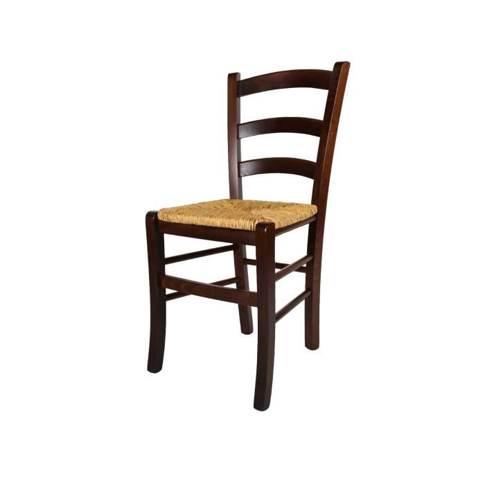 Chaise Venezia En Bois Massif Avec Assise En Paille De Riz Teinte Noyer Foncé