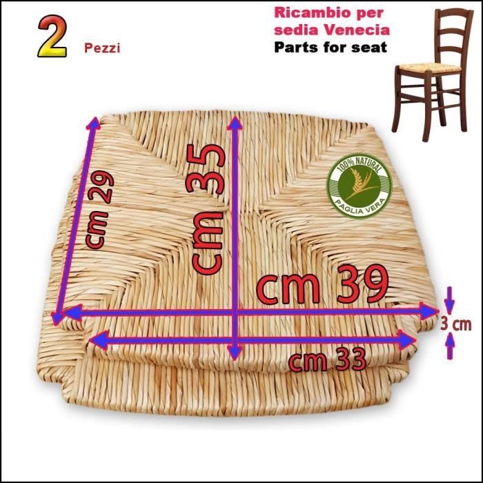 Chaise en paille de rivière - PISA - Remplacement 2 pièces - Marron - Bois massif