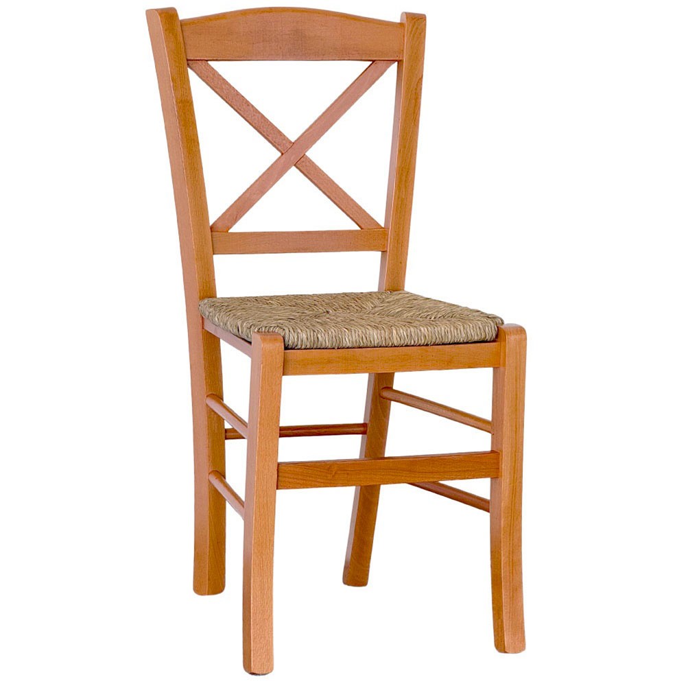 Tommychairs - Chaise cuisine CUORE robuste structure en bois de hêtre peindré en couleur noyer clair et assise en paille
