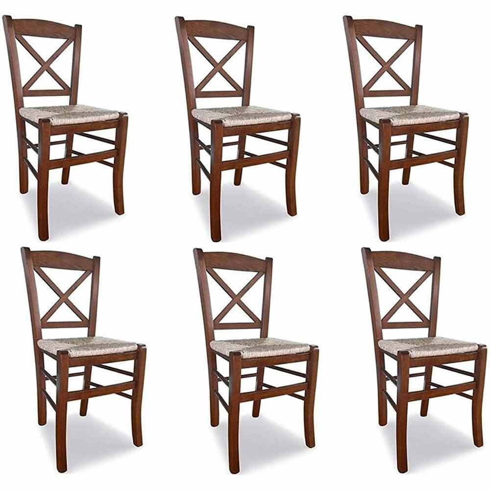 Chaise en Bois Venise Croix Noyer Sombre Avec Siège En Paille X 6