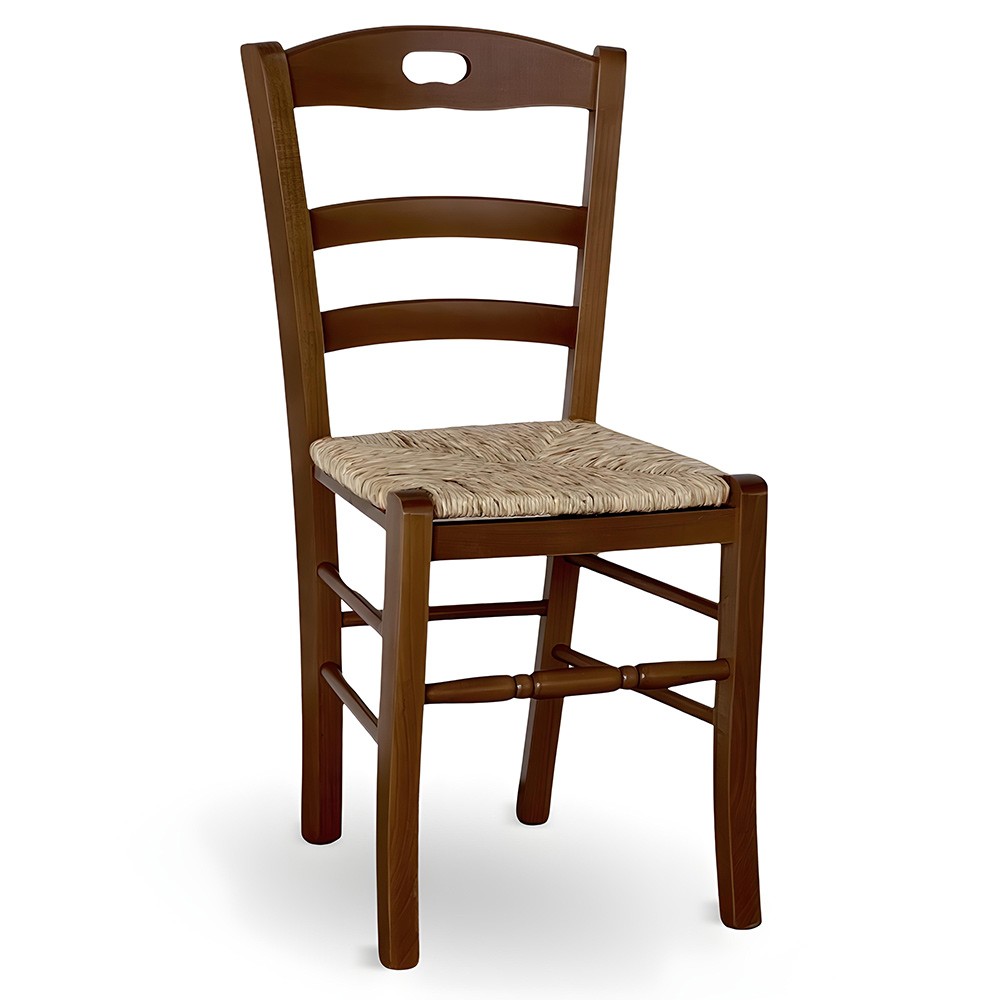 Chaise En Bois Venezia Noyer Clair Avec Assise En Paille Palustre Restaurant