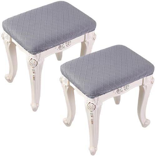 SDNAM Housse de Tabouret Rectangulaire Extensible,Housse de Chaise Couvre Impression Couverture de Tabouret Coiffeuse Tabouret de Piano Housse De Protection Stool Cover(Grau,2er Set)