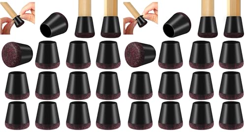 Protection Pied de Chaise, 32 pièces Noir Protege Pied de Chaise, Ronds Patins pour Chaises en Silicone avec Feutre épaissi, Convient aux planchers de Bois Franc (Fit:20.1-30mm)