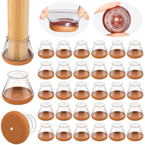 Protection Pied de Chaise, 32 pièces Transparent Protege Pied de Chaise, Ronds Patins pour Chaises en Silicone avec Feutre épaissi, Convient aux planchers de Bois Franc (Fit:20.1-30mm)
