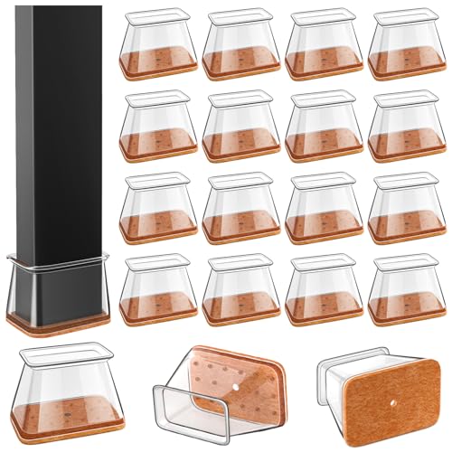 Protection Pied de Chaise rectangulaires, 24 pièces Transparent Protege Pied de Chaise, Patins pour Chaises en Silicone avec Feutre, Convient aux planchers de Bois Franc(Fit:périmètre:125-150mm)