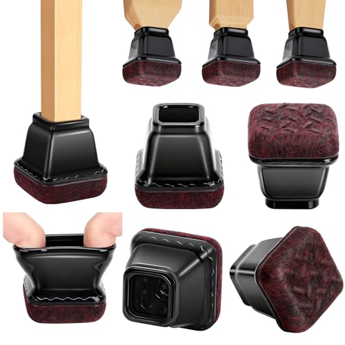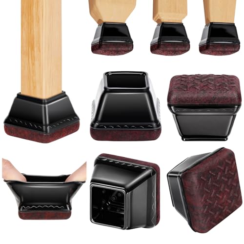 Euqvunn 18 Pièces Protection Pied de Chaise, Patin Chaise Noir avec Coussinets en Feutre, Embout Pied de Chaise Carrés pour Sols en Bois/Carrelage, Pas de Rayures Bruit (Convient:35-45mm)