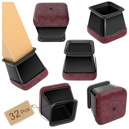 Carré Protection Pied de Chaise, 32 pièces Noir Protege Pied de Chaise, Patins pour Chaises en Silicone avec Feutre épaissi, Convient aux planchers de Bois Franc (Fit:27-36mm)