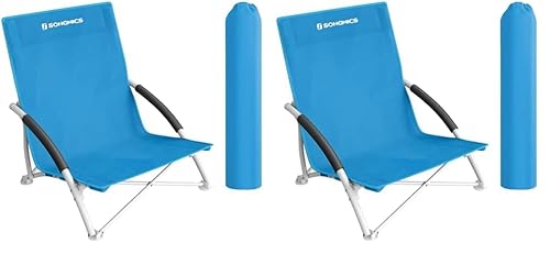 SONGMICS Chaise de Plage, Pliante, Portable, Dossier Haut, Légère, Grande Capacité de Charge, Chaise d'Extérieur avec Sac de Transport, Bleu GCB61S (Lot de 2)