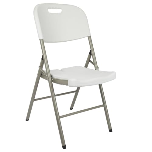 Perel Chaise pliante blanche pour intérieur et extérieur, en plastique, économisant de l'espace, idéale pour événements, fêtes et restauration, avec cadre en acier et assise résistante aux intempéries