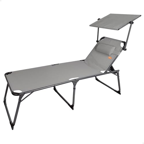 AKTIVE 62613 - Chaise Longue Pliante avec Parasol et Coussin, 193X67X48, 96 cm, Hauteur d'Assise 48 cm, Grise, 5 Positions, Poids Max 100 kg