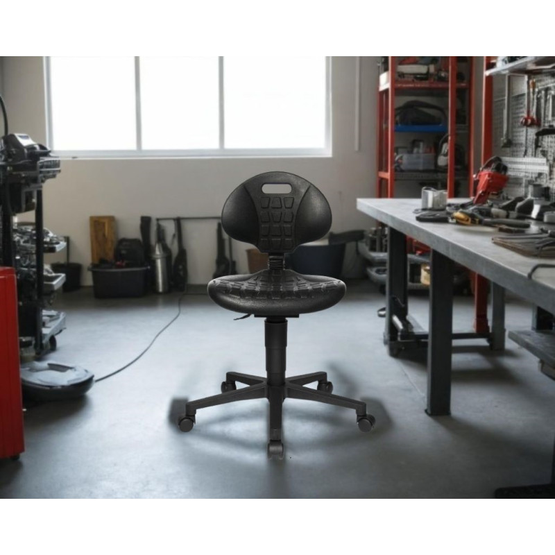 Chaise d'atelier ergonomique sur roulettes en PU noir Tecka Noir 41 cm pour la version standard et 50 cm pour la version mi-haute