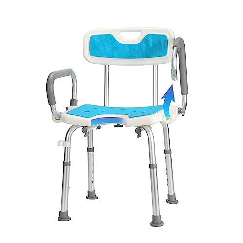 Yakimz Chaise de douche pour personnes âgées, tabouret de douche de salle de bain avec accoudoirs et dossier réglables, hauteur réglable, aide à la douche pour les femmes enceintes, jusqu'à 136 kg