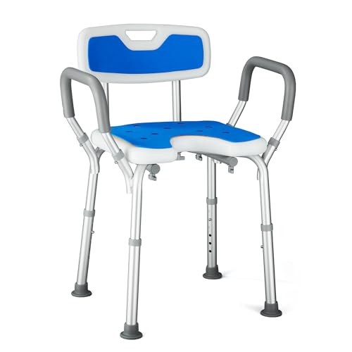 UISEBRT Tabouret de douche réglable en hauteur - Chaise de douche pour personnes âgées et femmes enceintes - Chaise de salle de bain pour la douche (avec dossier pour les bras et le dossier)