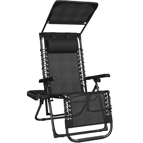 Yaheetech Chaise Longue avec Pare Soleil Bain de Soleil Pliable, avec Pare Soleil & Appuie-tête, Chaise Longue inclinable Transat de Plage Relax Camping Salon de Jardin Exterieur, Gris (1, Noir)