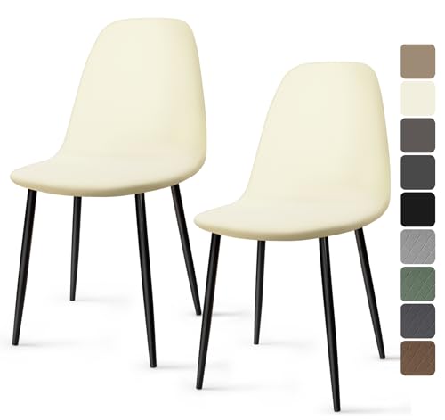 Housse de Chaise Scandinave 2 Pieces Universel Housses Chaise de Salle à Manger Lavable Extensible Couverture de Chaise Housse Chaise pour Décoration Salon Cuisine Hôtel (Jaune Crème, 2 Pieces)-KC