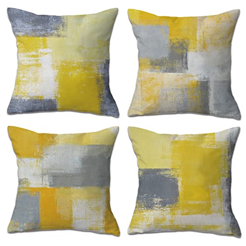 OCEUMACO Housse de Coussin 45x45 Abstrait Jaune Décoratif Housses Coussins Canapé Lit Chaise Salon Lot de 4 Art Moderne Géométrique Taie d'oreiller en Lin Scandinave - Gris Moutarde