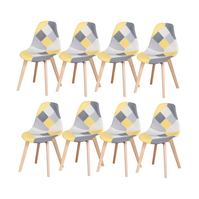 BenyLed Lot de 8 Chaises de Salle à Manger Chaises Patchwork Colorées avec Pieds en Bois Chaise Longue Scandinave (Jaune-8pcs)