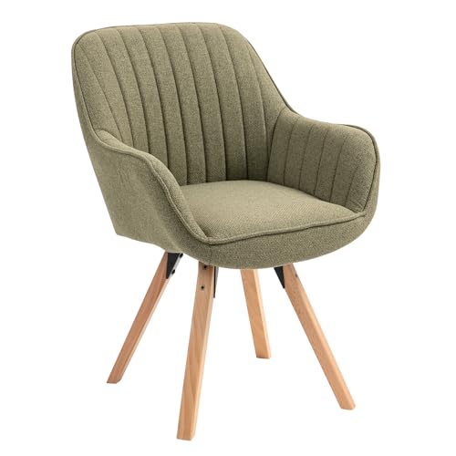 Meuble Cosy Chaise Salle à Manger Scandinave Fauteuil Coiffeuse Siège Pivotant avec Accoudoirs pour Chambre Salon Cuisine Bureau, Rembourré en Tissu Pieds en Bois Massif, Vert, 60x58x83cm