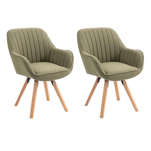 Meuble Cosy Lot de 2 Chaise Salle à Manger Scandinave Fauteuil Coiffeuse Siège Pivotant avec Accoudoirs pour Chambre Salon Cuisine Bureau, Rembourré en Tissu Pieds en Bois Massif, Vert, 60x58x83cm