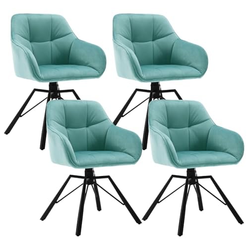 WOLTU Chaise Pivotante à 360°, Lot de 4, Chaise Salle à Manger Scandinave, en Velours, Assise Rembourrée, Pieds en Métal, Vert Foncé, BH365ts-4