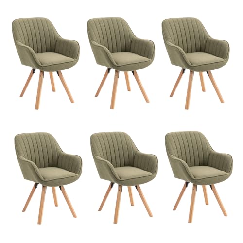 MEUBLE COSY Lot de 6 Chaise Salle à Manger Scandinave Fauteuil Coiffeuse Siège Pivotant avec Accoudoirs pour Chambre Salon Cuisine Bureau, Rembourré en Tissu Pieds en Bois Massif, Vert, 60x58x83cm