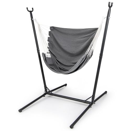 FANTASK Fauteuil Suspendu avec Armature, Charge maximale : 120 kg, réglable en Hauteur sur 6 Positions, avec Poche latérale, Chaise Suspendue pour l'extérieur et l'intérieur, pour Salon, Chambre à