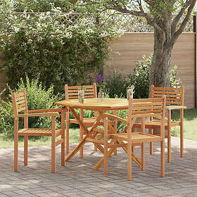 Set De Salle À Manger Jardin Vidaxl 7 Pièces En Bois Massif Teck, Chaise De Jardin Empilable Vidaxl 2 Pcs En Bois Massif Teck, Chaise De Jardin Empilable Vidaxl 4 Pcs En Bois Massif Teck