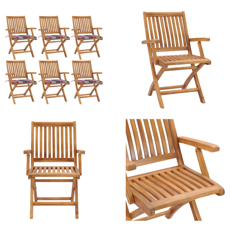 vidaXL Chaises de jardin pliantes avec coussins 6 pcs. Bois massif teck - Chaise de jardin - Chaise de jardin - Chaise en bois