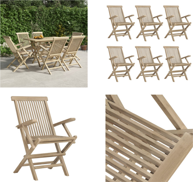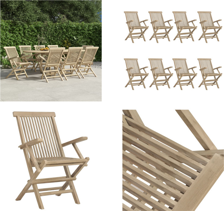 vidaXL Chaises de jardin 8 pcs. Pliable Gris 56x61x89 cm Bois massif Teck - Chaise de jardin pliable - Chaise de jardin pliable - Chaise de jardin pliable