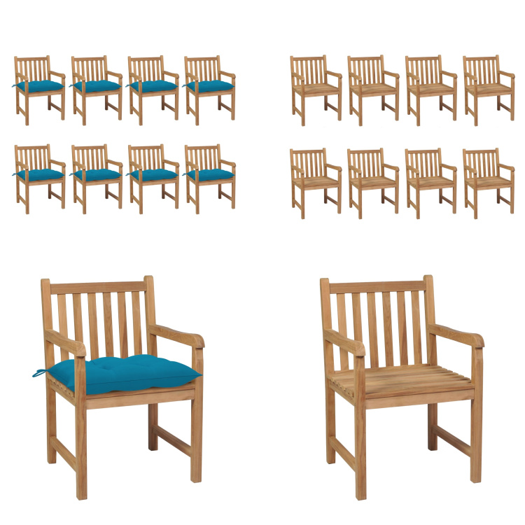 vidaXL Chaises de jardin 8 pièces avec coussins bleu clair Bois massif Teck - Chaise de jardin - Chaises de jardin - Fauteuils de jardin - Chaise en bois