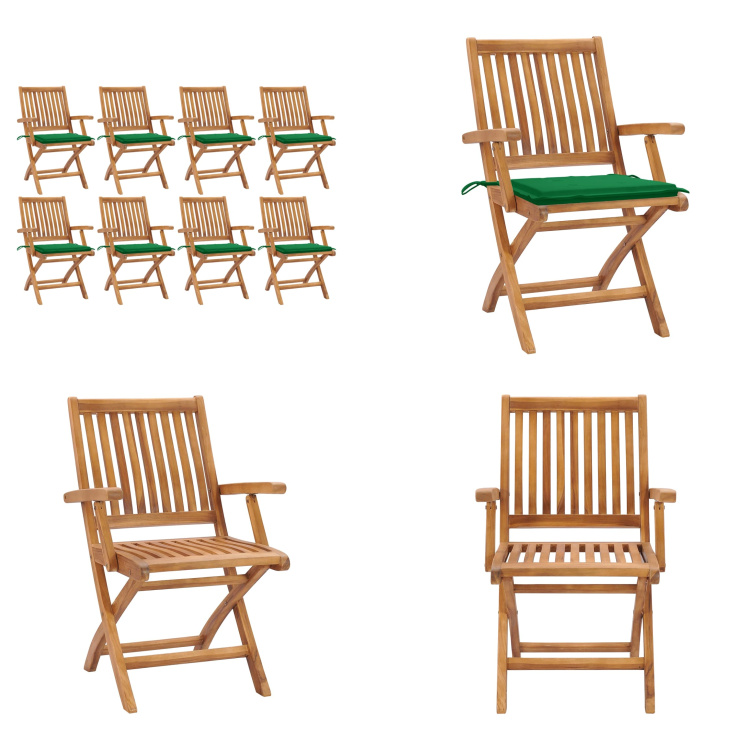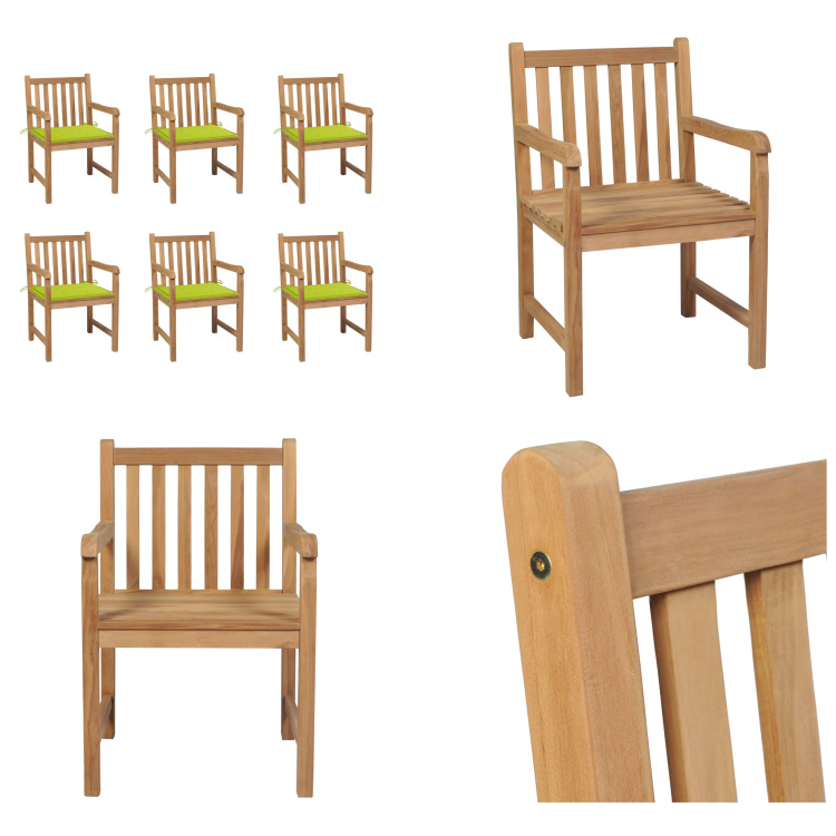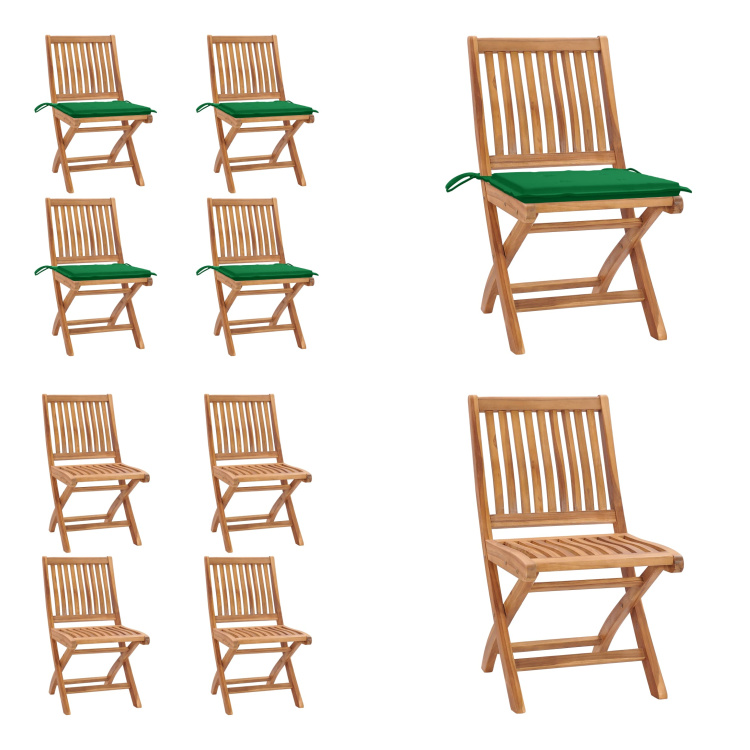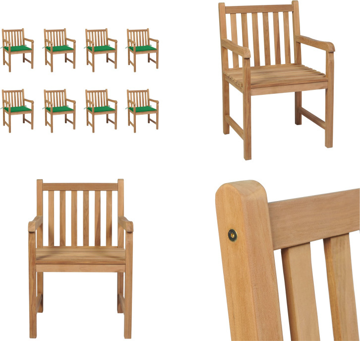 vidaXL Chaises de jardin 8 pièces avec coussins verts Bois massif Teck - Chaise de jardin - Chaises de jardin - Fauteuils de jardin - Chaise en bois